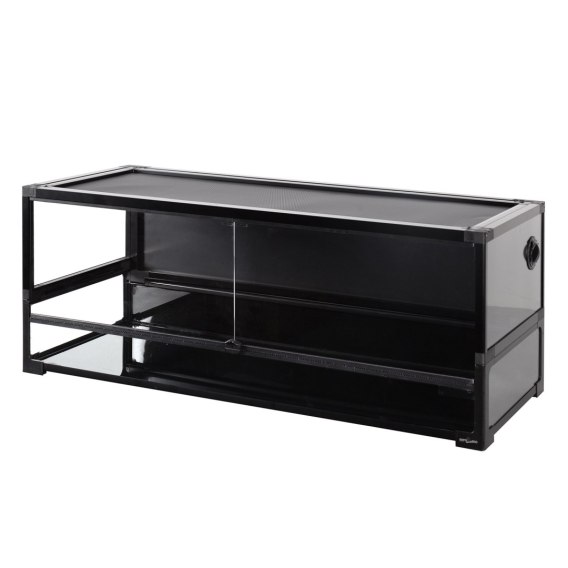 Przednia pokrywa terrarium posiada wbudowaną listwę wentylacyjną, która wspomaga przepływ powietrza i minimalizuje gromadzenie się wilgoci.